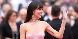 Dakota Johnson Stuns in Cotton-Candy Pink Fringe Gown at Cannes - ELLE White, Clothing, Fashion, Street fashion, Shoulder, Walking, Sunglasses, Dress ... Hearst Fashion and Luxury Collection - A Part of Hearst Digital Media.